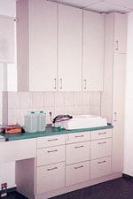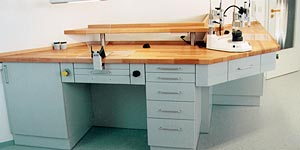 ![]() Laboreinrichtung. Schubläden auf Bedürfnisse und Raumhöhe exakt abgestimmt. |