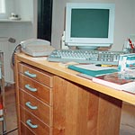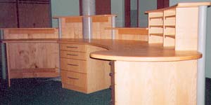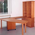 Schreibtisch in Erle. Griffe Massivholz lackiert. |