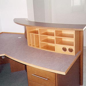 Arbeitstisch MDF klarlackiert. Aufsatz Buche gebeizt. |