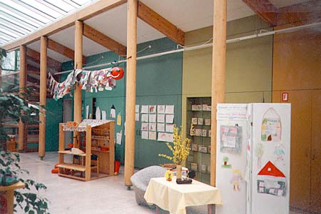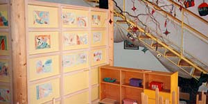 Treppe in Gruppenzimmer. Zwei Handläufe aus