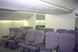 Nachbildung des Innenraums einer Boing 777. Gebaut wurde dieses Modell für Funktionstests v.a. der Beleuchtung. |